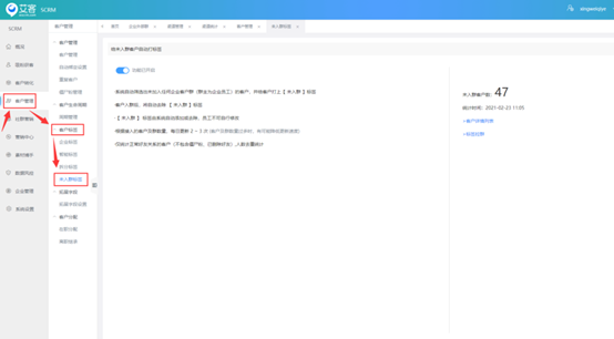 艾客的不在群功提醒功能刚好可以弥补这一漏洞,若企信客户不在任意一个外部群,开启不在群自动打标签功能,将给这个客户自动打上“未入群”标签,并统计未入群客户的数量。用户入群后该标签自动剔除。帮助商家能快速找到未入群客户并可以通过标签拉群、手动拉群等方式将客户拉进群。
