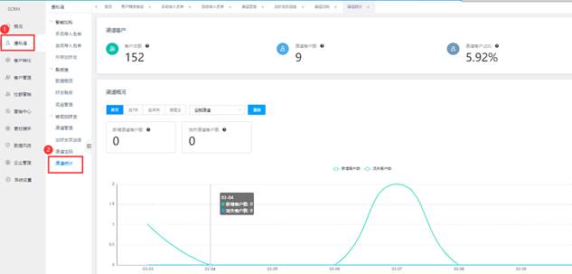 1.1企业的核心数据看板,展示企业在拉新、沟通服务、成交业绩等方面的数据统计;