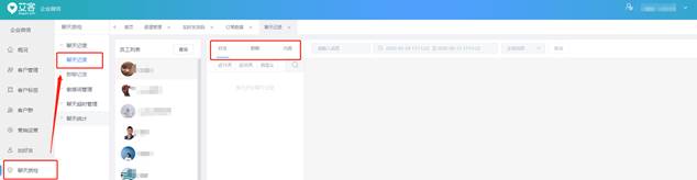 统计员工聊天情况以及聊天排行,包含聊天总数、昨日或今日新增聊天数等