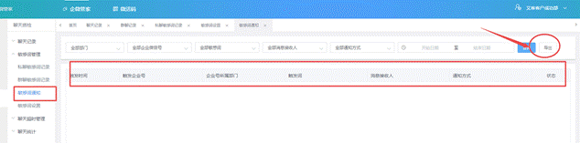 主要用于查看触发敏感词通知的明细列表,可支持导出
