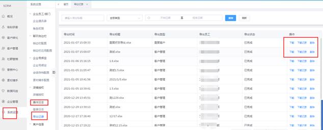 主要查看后台所有导出数据表格的记录明细,并可在此进行查看下载和删除