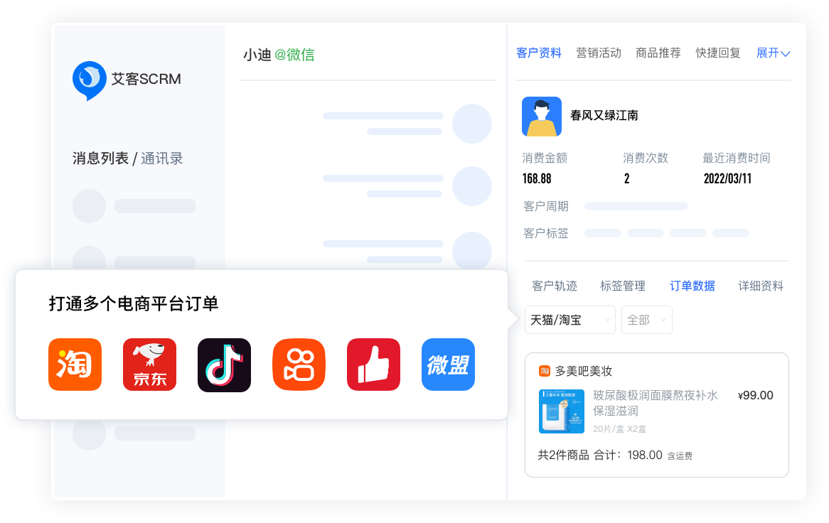 电商平台的订单客户是最精准的客户群体,使用艾客SCRM系统的渠道活码、批量导流、加粉短链等功能,将老客户、公域客户导入私域客户池,沉淀高质量客户。
