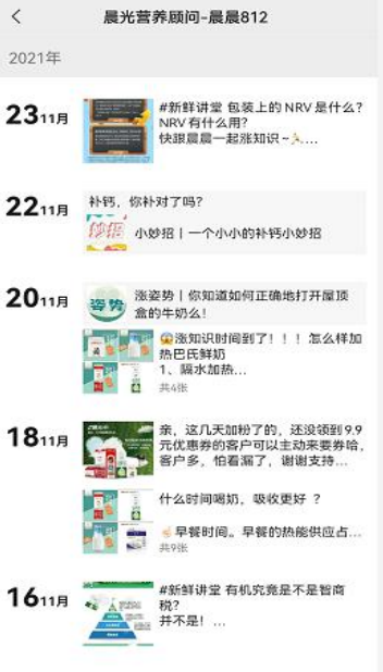 定期在朋友圈推送“鲜奶讲堂贴士知识”,配合公众号号推文、短视频等进行鲜奶知识输出,有效的给用户更多产品相关常识。