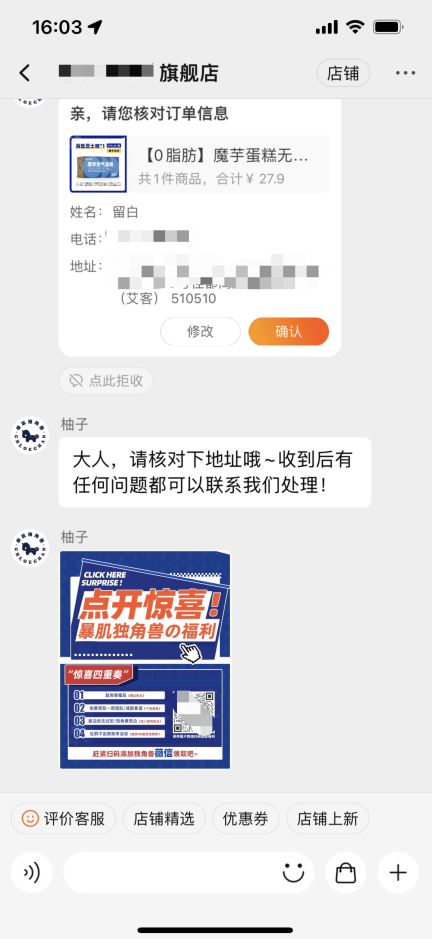 通过在旺旺中做抽奖或设置利益点,加粉率可达50%。旺旺话术设计要素:1、利益点;2、微信号引导(企微通过);3、限时限量