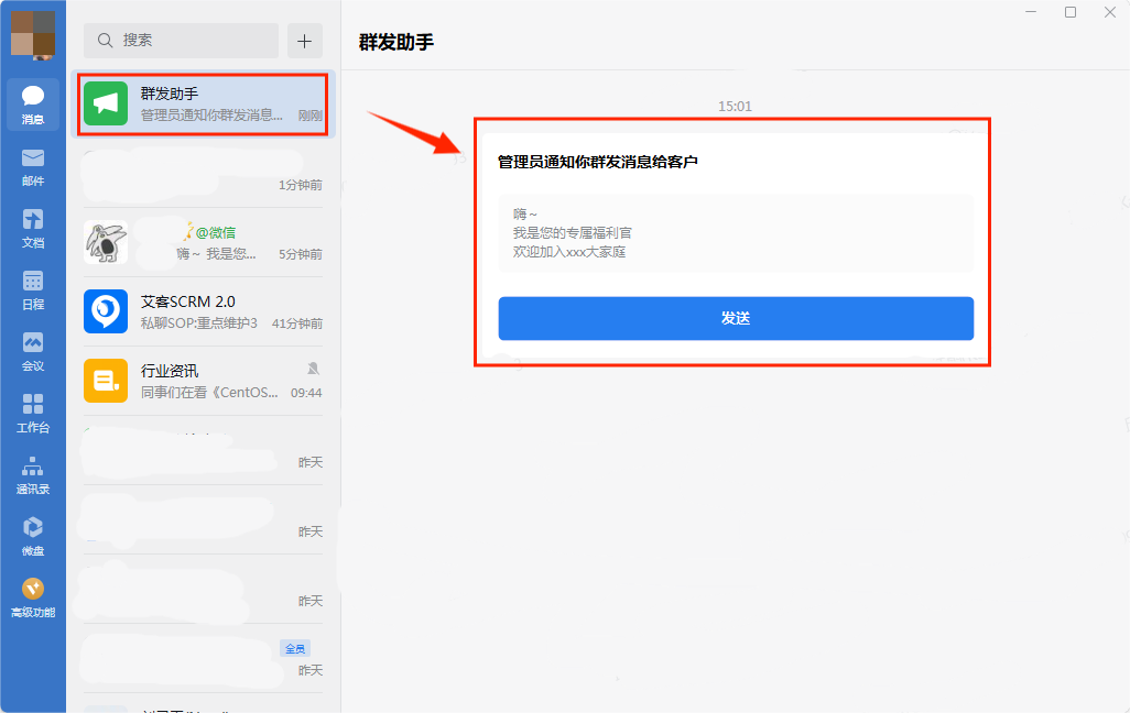图8:员工端私聊群发效果