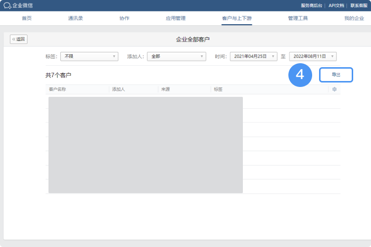 1、企业微信管理员在企业微信管理后台导出企业客户资料步骤:登录企业微信管理后台,在“客户与上下游”——“客户”——“查看客户列表”——“导出”,导出企业的客户。