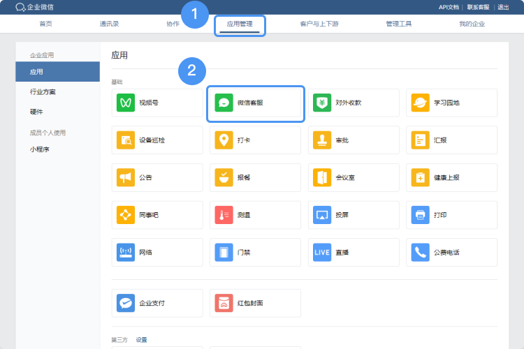 首先是微信客户欢迎语的配置:配置步骤为:企业微信管理员工登录企业微信管理后台“应用管理”——“应用”——“微信客服”——“欢迎语”,就可以对欢迎语的相关设置了。