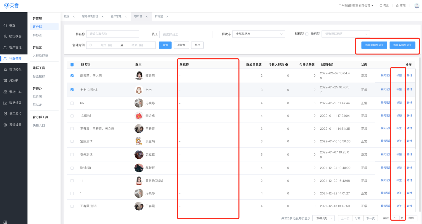 如果觉得这样打标签也比较慢,还可以使用企业微信服务商——艾客SCRM系统的渠道活码功能,当客户扫码加企业微信好友时,系统自动给客户打上渠道标签。无限群活码,除了可以无限制引导用户入群外,也支持自动给群好友打上标签。