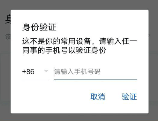 如果换了一部手机进行登录企业微信账号,会出现一个身份验证提示,内容是“这不是你的常用设备,请输入任一同事的手机号以验证身份”,当输入某一个同事的手机号验证通过后,方可以成功登录企业微信。并且在成功登录的同一时间,原手机上的企业微信账号会自动退出,不能再进行使用。