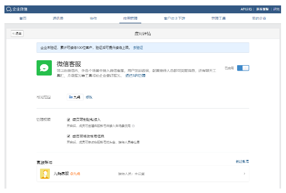 开启微信客户操作起来很简单,注册企业微信后,管理员在企微管理后台【应用管理】中,启用微信客服即可。