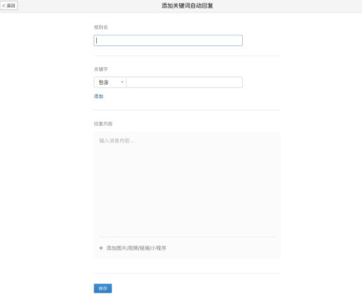 创建规则时可以对规则进行命名,能选择回复文字、图片、视频、小程序、链接等形式的内容。