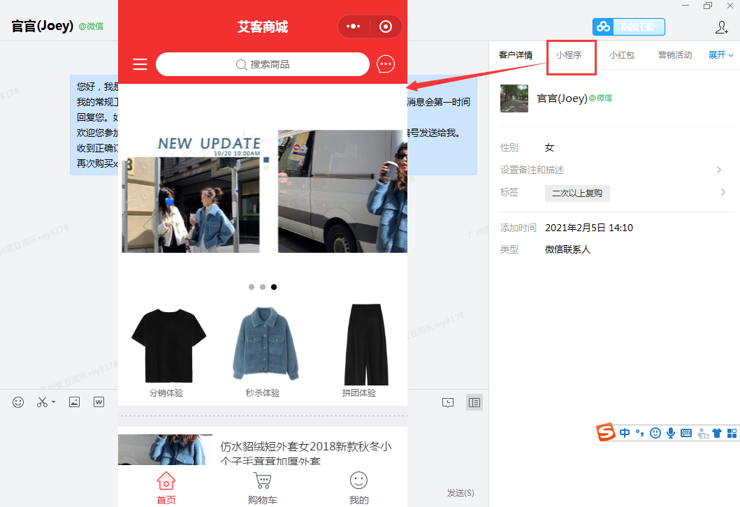 如果企业使用了艾客SCRM系统,那么就可以在艾客scrm后台小程序素材库添加后,即可在此进行展示并转发。