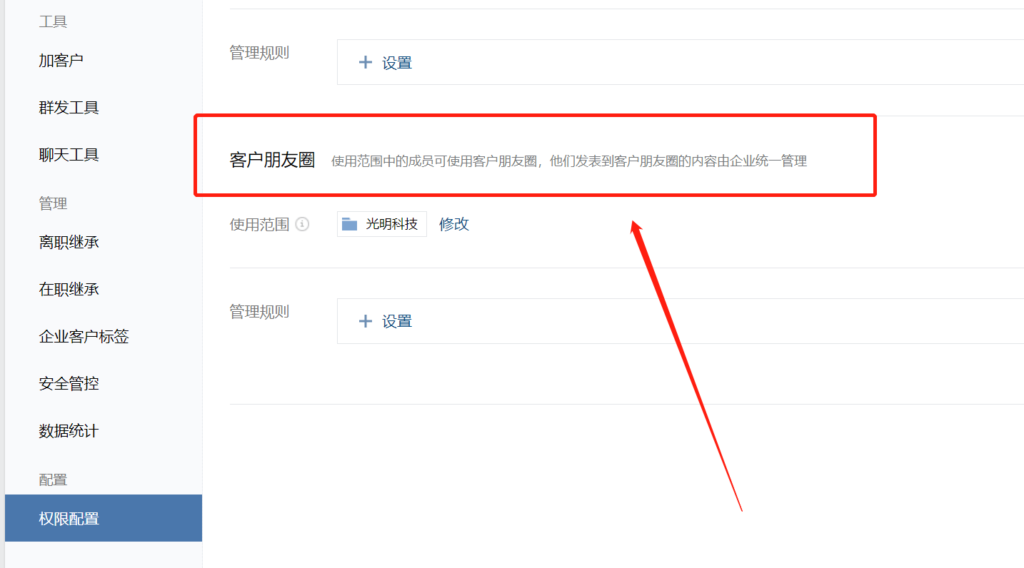 企业微信管理员没有开启入口,也就是没有开启“客户联系”功能,也是无法看到客户朋友圈的。