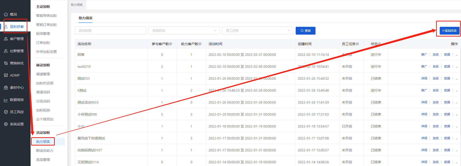 当好友或者用户获得任务链接后,进入活动获得自己的助力海报,分享给自己的好友,好友扫码添加商家的员工给好友助力,完成助力可领取奖品。